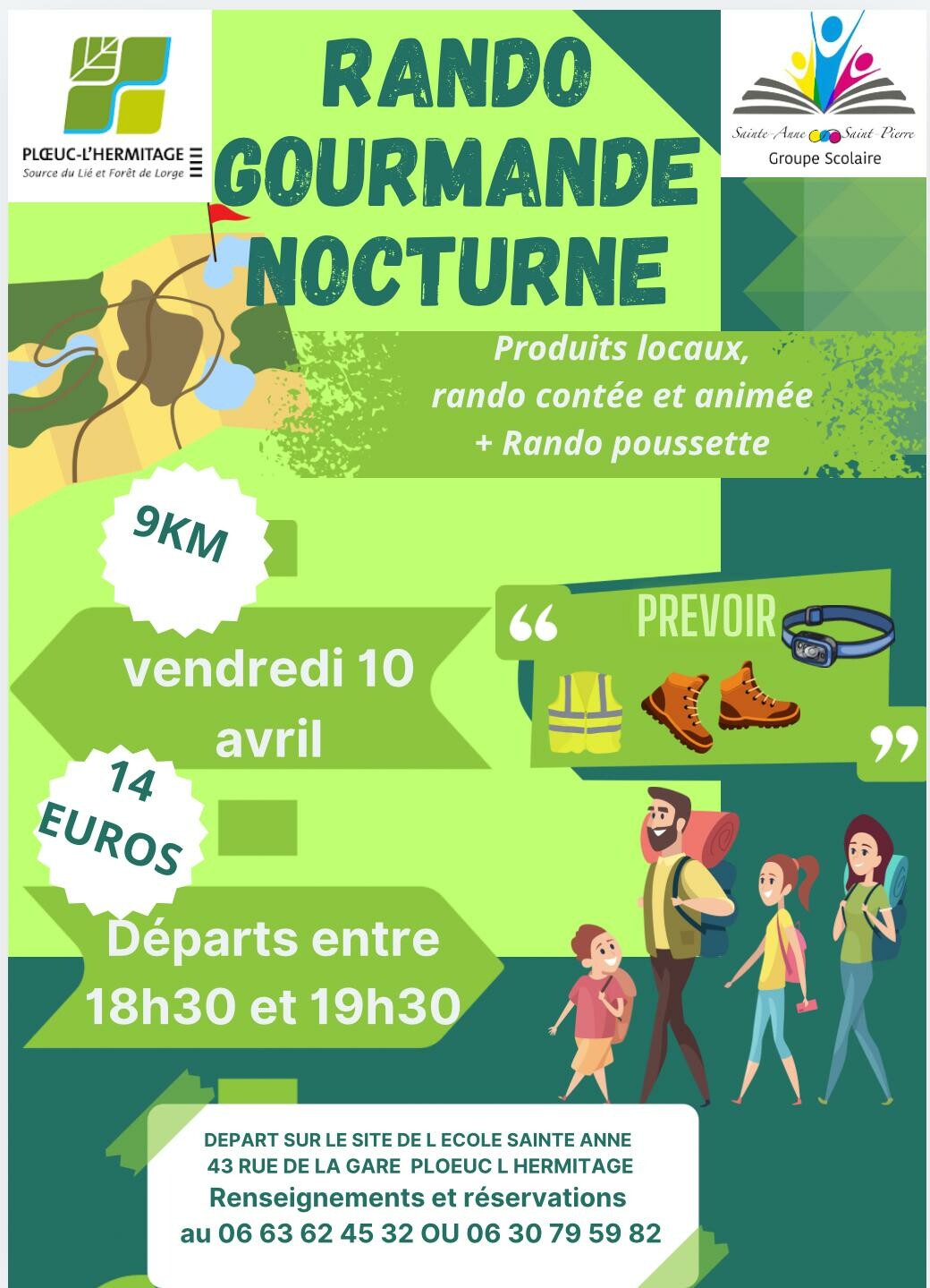 L'association des parents d'élèves de l'école Sainte-Anne organise une Rando gourmande nocturne le vendredi 10 avril à 18h30.Tarif : 14€9km, rando poussette, rando contée et animée