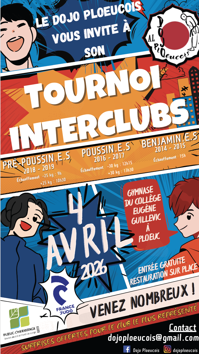 Le Dojo Ploeucois organise un tournoi interclubs le samedi 4 avril prochain. RDV au gymnase du collège Eugène Guillevic dès 9h pour encourager les pépites locales.Restauration et buvette sur place